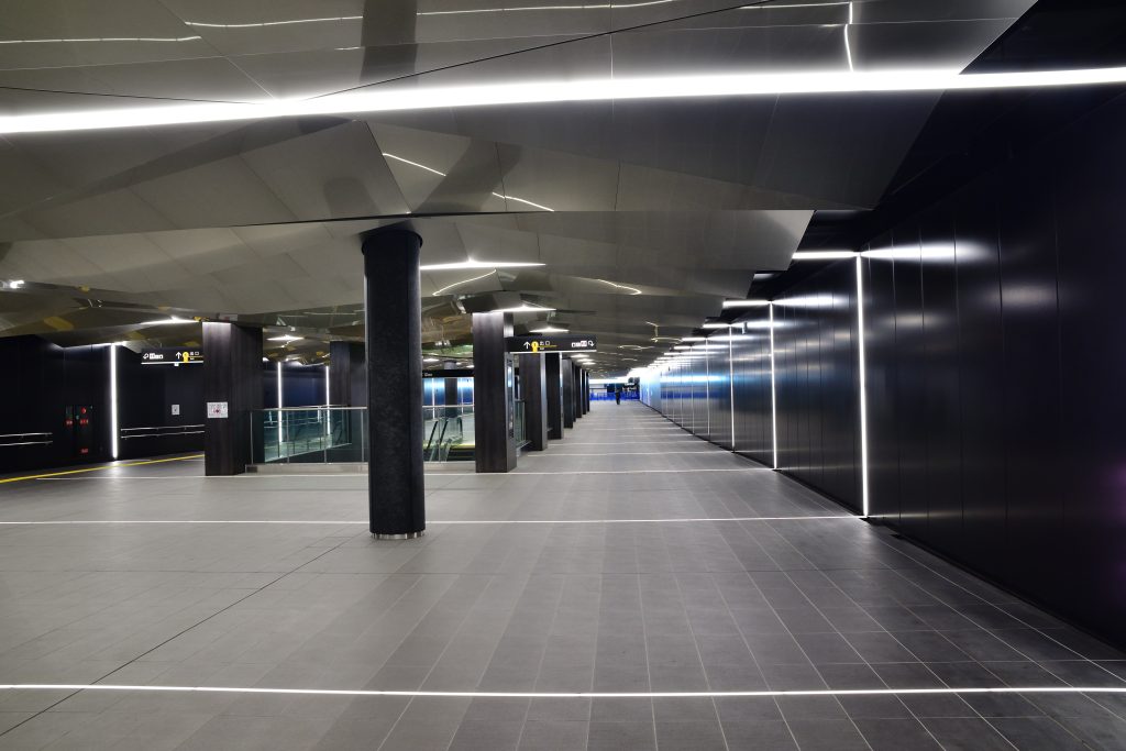 夢洲の入り口もこんな感じですね。意外だったのは向かって左のエスカレーター。止めたりせずに4台とも動かしたままでした。